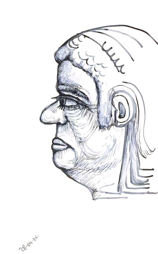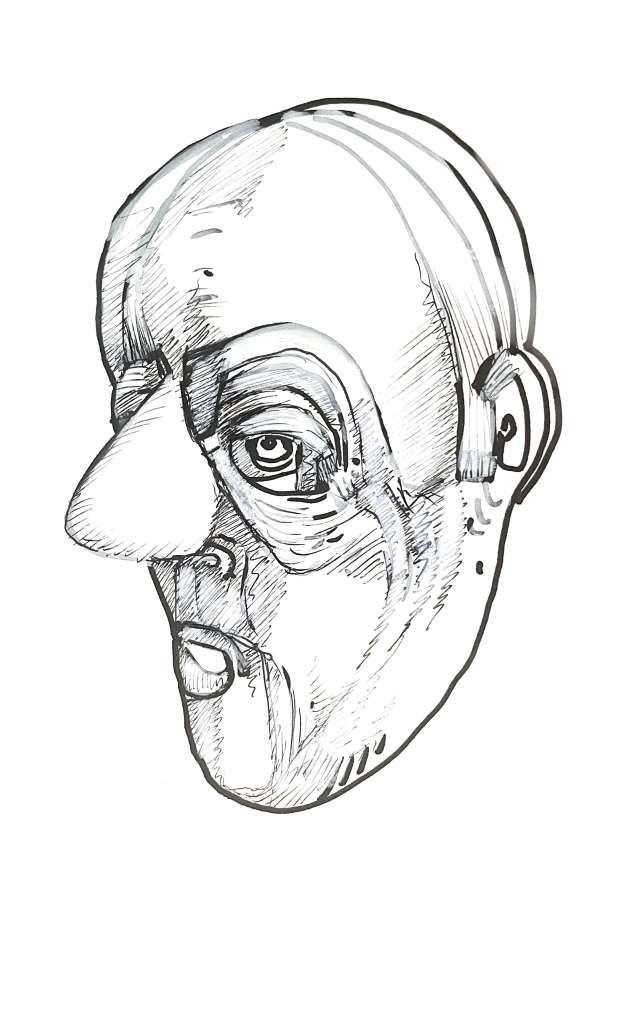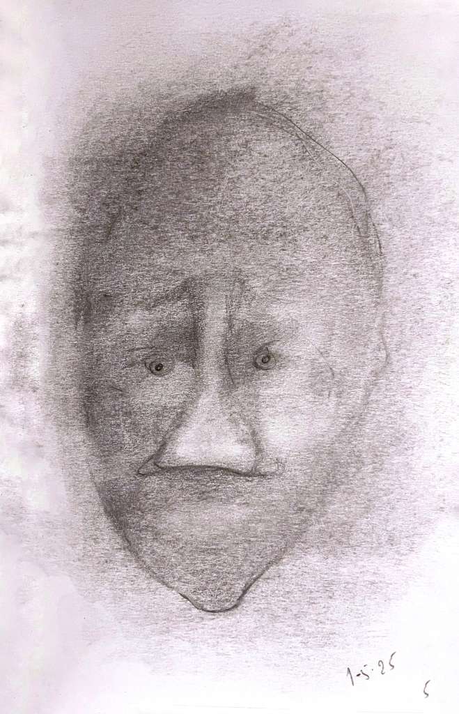 Ten rysunek to twarz, która wydaje się niepełna – jakby zatarła ją mgła, rozpuścił czas lub nieudolność pamięci. Jedno oko jest wyraź…