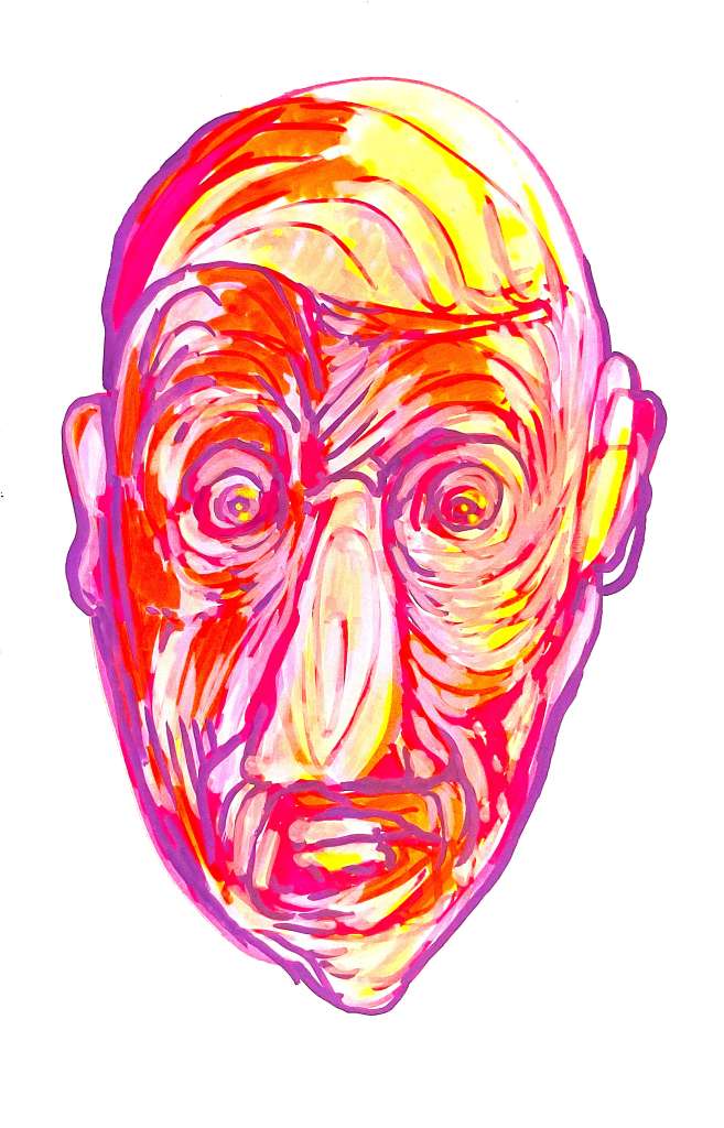 Czwarta odsłona cyklu jest najbardziej ekspresyjna i kolorystycznie intensywna. Twarz, zbudowana z falujących linii różu, pomarańczu…